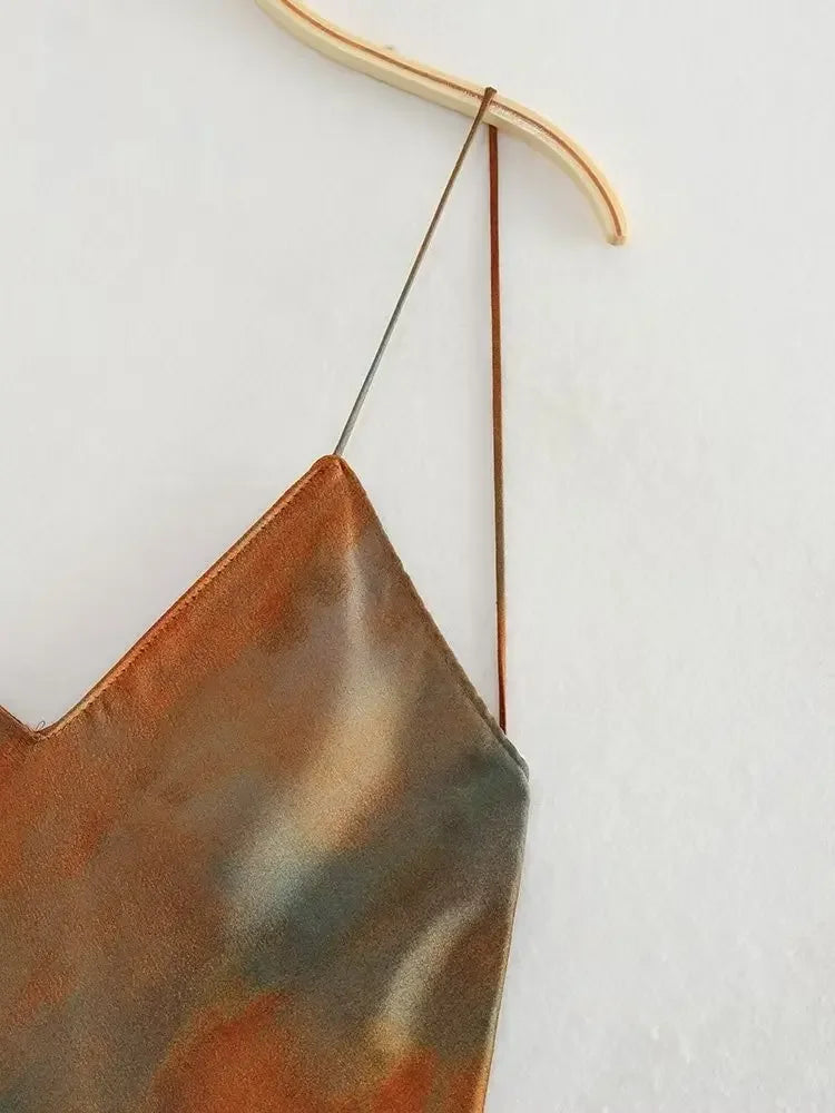 Para momentos que pedem elegância com personalidade. O Vestido Sunset Shine traz uma combinação vibrante de tons quentes e frios em um tecido acetinado que reflete a luz com charme. Com modelagem fluida, decote V e costas abertas, é a peça ideal para eventos ao entardecer, jantares especiais ou aquela festa que pede presença marcante — com conforto e leveza.